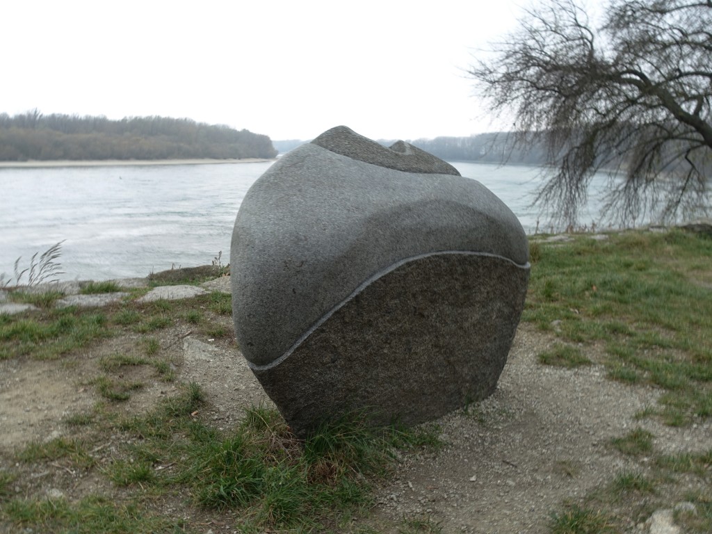 Pod Hradom Devín je vedľa asfaltovej cesty na Slovanskom nábreží osadený svetlý kamenný kváder s reliéfnym členením. Má podobu mierne prehnutého hranolu s drsným povrchom v podobe horizontálne vysekaných línií. Hranol je „zviazaný“ pravouhlo prekríženými hladkými reliéfnymi pásmi. Tie ho zdanlivo držia pokope. Podobne ako neďaleký trojdielny kameň od toho istého autora, aj toto dielo evokuje rôzne archetypy a symboly a ponúka priestor pre fantáziu a rôzne interpretácie.