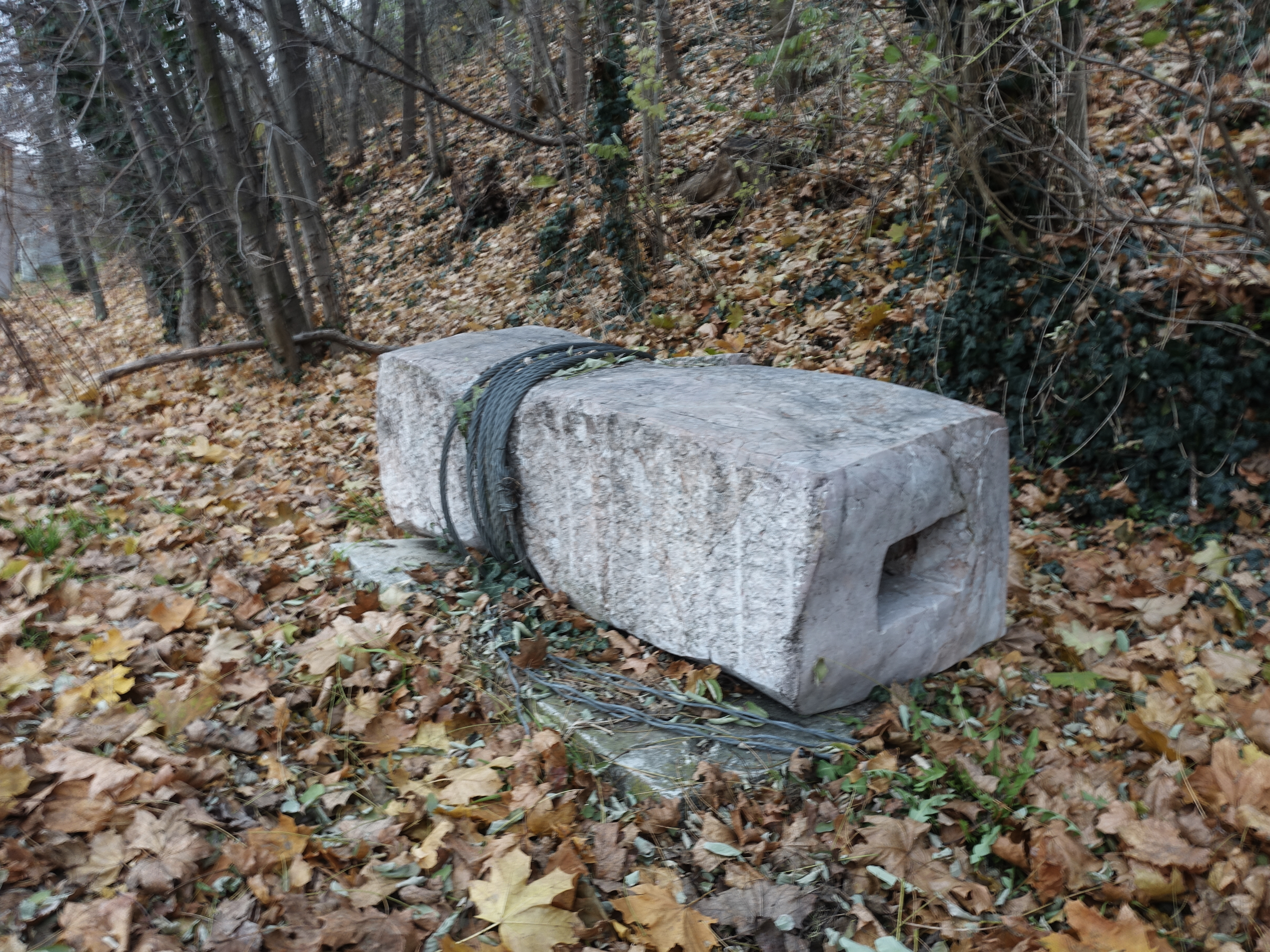 Dielo nemá podstavec, je zapustené do terénu zloženého zo zmesi zeme a štrku. Pri povodni v septembri 2024 bolo okolie diela čiastočne podmyté.