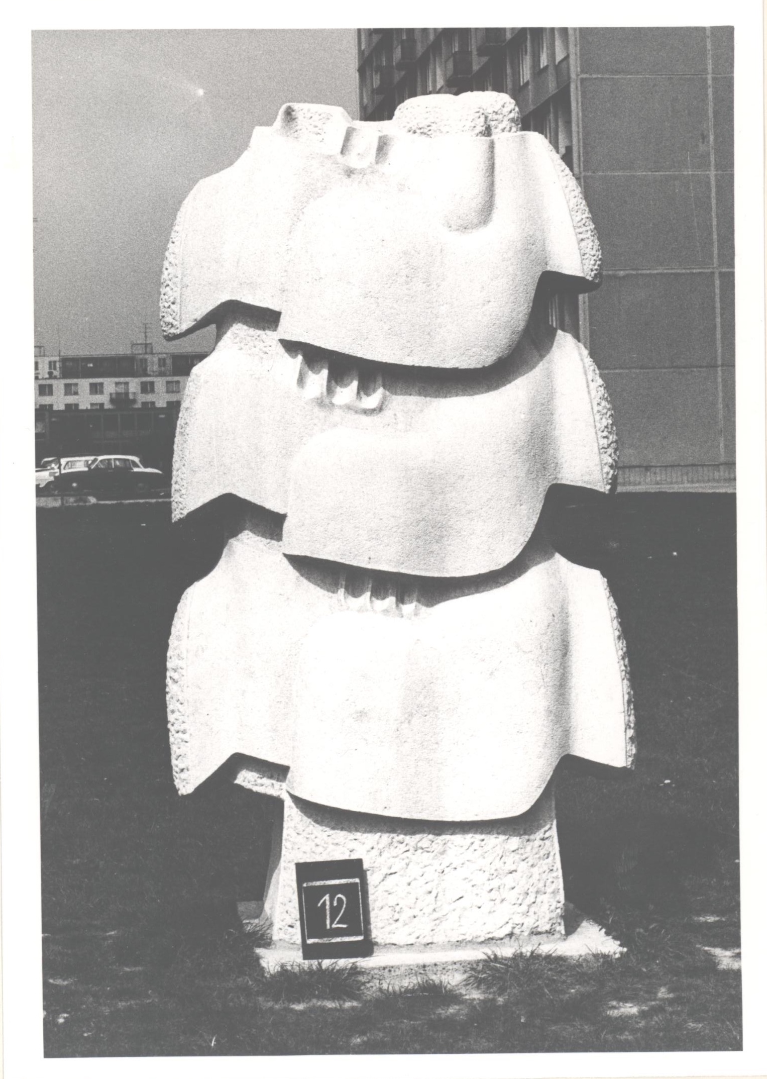 Plastiku osadili na trávnatej ploche námestia pred školou. Sochár ju mal podľa archívnej dokumentácie vytvoriť na určenú tému – vesmír. Išlo o prvú zásadnejšiu a zároveň poslednú bratislavskú monumentálnu realizáciu Eugena Bekényiho, absolventa Vysokej školy umeleckopriemyselnej v Prahe. Plastika sa skladala zo štvorcového rámu stojaceho na vyvýšenom podstavci vo forme jednoduchej konštrukcie z dvoch nožičiek. Jednoduchá konštrukcia umožnila, aby do vnútornej časti geometricky tvarovaného rámu vychádzali a vchádzali do všetkých strán biomorfne tvarované výčnelky. Svojím naznačeným pohybom dynamizovali vnútro kompozície a napĺňali ju hravou fantáziou. Kombinácia prísnej, racionálne geometrie konštrukcie rámu v kontraste s chaotickou hrou prírodných tvarov prispievala k obrazotvornosti kompozície. Autor pracoval aj s negatívnymi tvarmi a priehľadmi do priestoru mimo sochy.