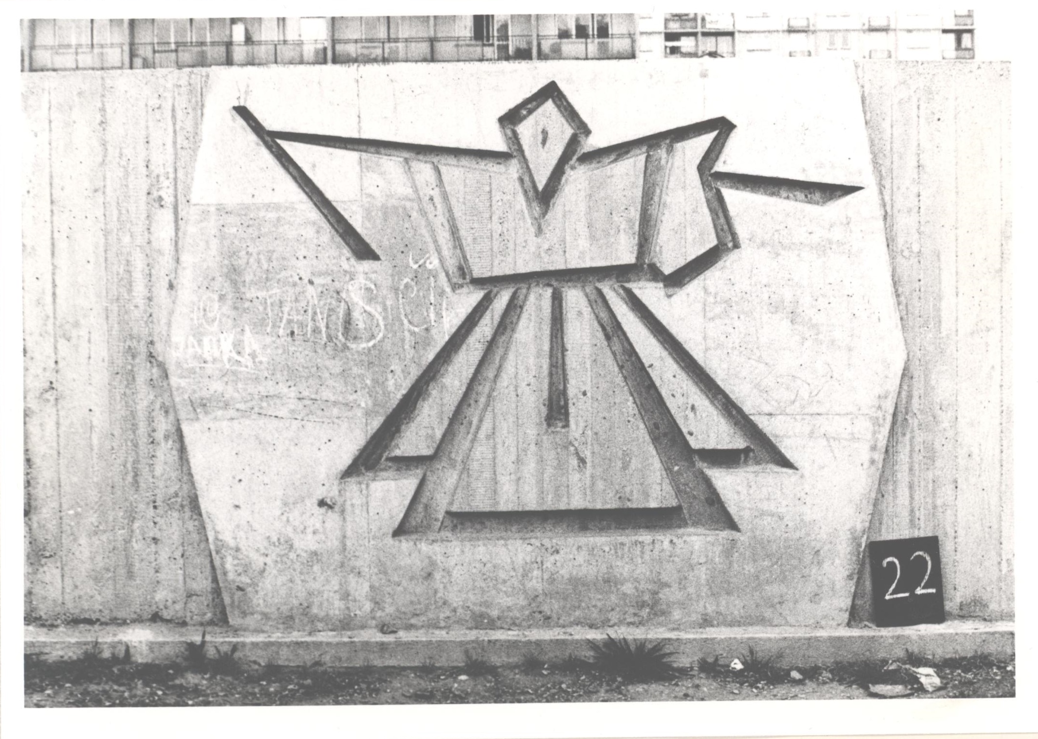 Ferdinand Milučký ako projektant sídliska Trávniky v spolupráci so Štefanom Ďurkovičom navrhol niekoľko sochárskych diel a fontán ako súčasť výtvarného doriešenia sídliska. V jeho prípade bolo prirodzené, že okrem architektúry navrhoval do svojich projektov aj výtvarnú zložku. Tri plastické útvary boli súčasťou ihrísk – pieskovísk. Realizoval ich v tzv. pohľadovom betóne, ktorý v tomto čase začali umelci frekventovane používať v sochárskej tvorbe a ako materiál nabral mimoriadnu popularitu. Opis útvarov je možné sprostredkovať iba na základe jednej čiernobielej fotografie a archívnej dokumentácie Fondu výtvarných umení (SNA, Bratislava), ktorá zaznamenáva, že tri plné hranolovité geometrické tvary boli výtvarne umocnené gradovaním hmôt a polkruhovitých výrezov. Kolaudačná komisia pozitívne hodnotila citlivé umiestnenie v priestore, čím výtvarne dotvárali dvorec ihriska pre deti. Abstraktné, geometrické umenie však bolo dôvodom, že odborno-politická komisia rozhodla, že sochy budú odstránené v rámci akcie v roku 1976. Zo sídliska Trávniky úradným rozhodnutím Národného výboru hlavného mesta SSR odstránili a zničili celkovo takmer 30 realizácií.